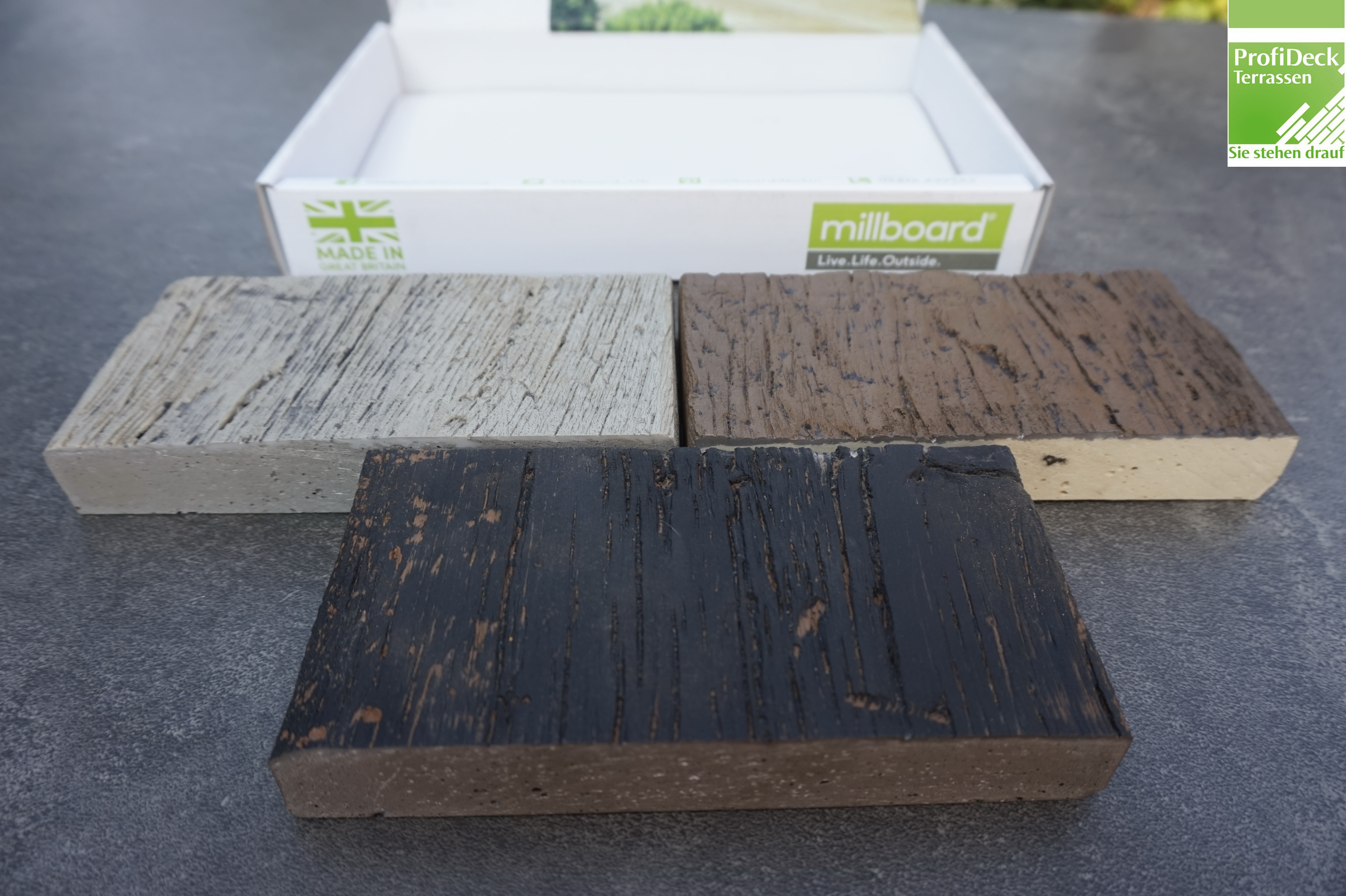 | Oberfläche: | Millboard Weathered (abgewitterte Holzoptik) |