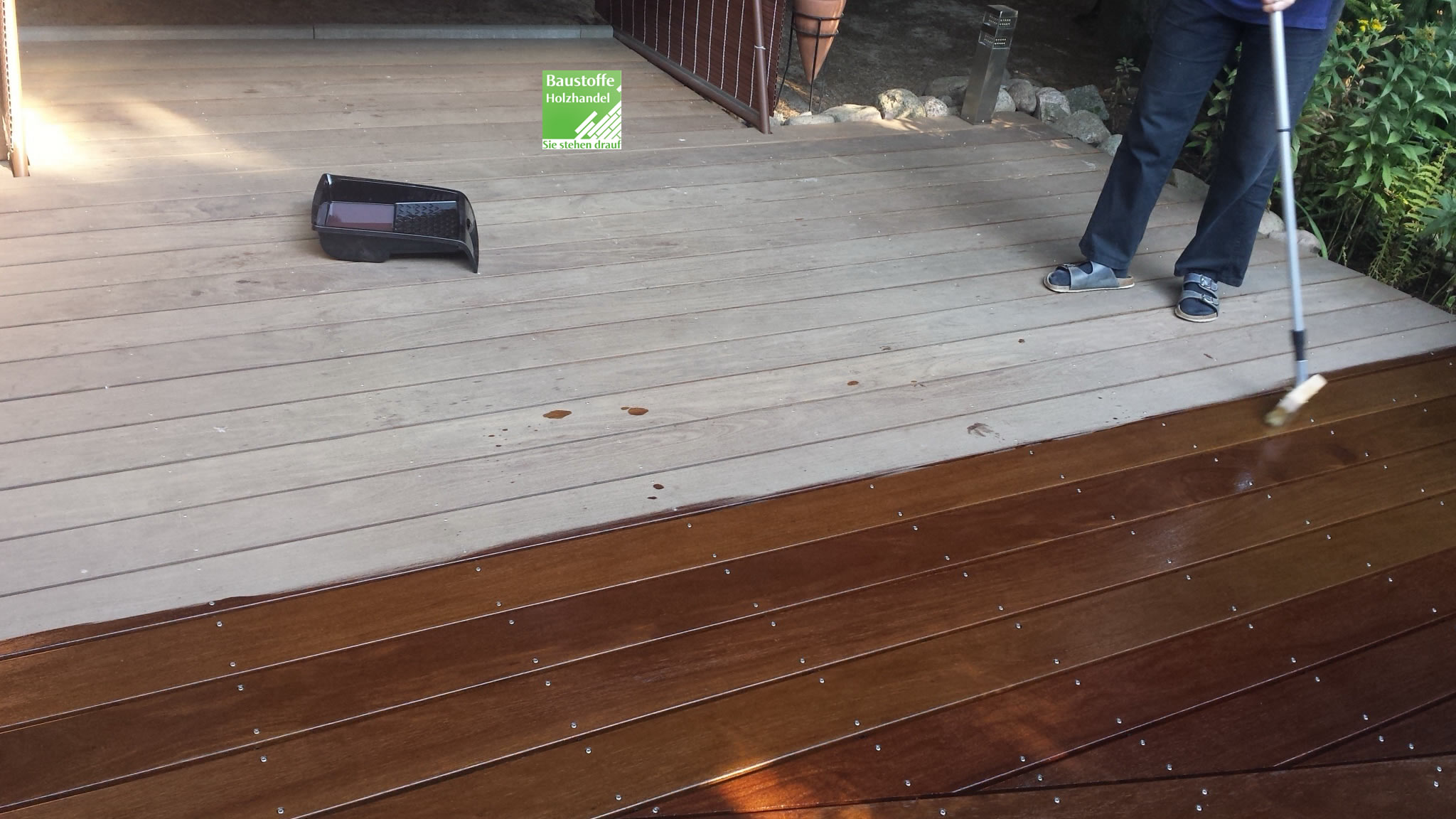 Abgewitterte Cumaru Terrasse wird frisch geölt